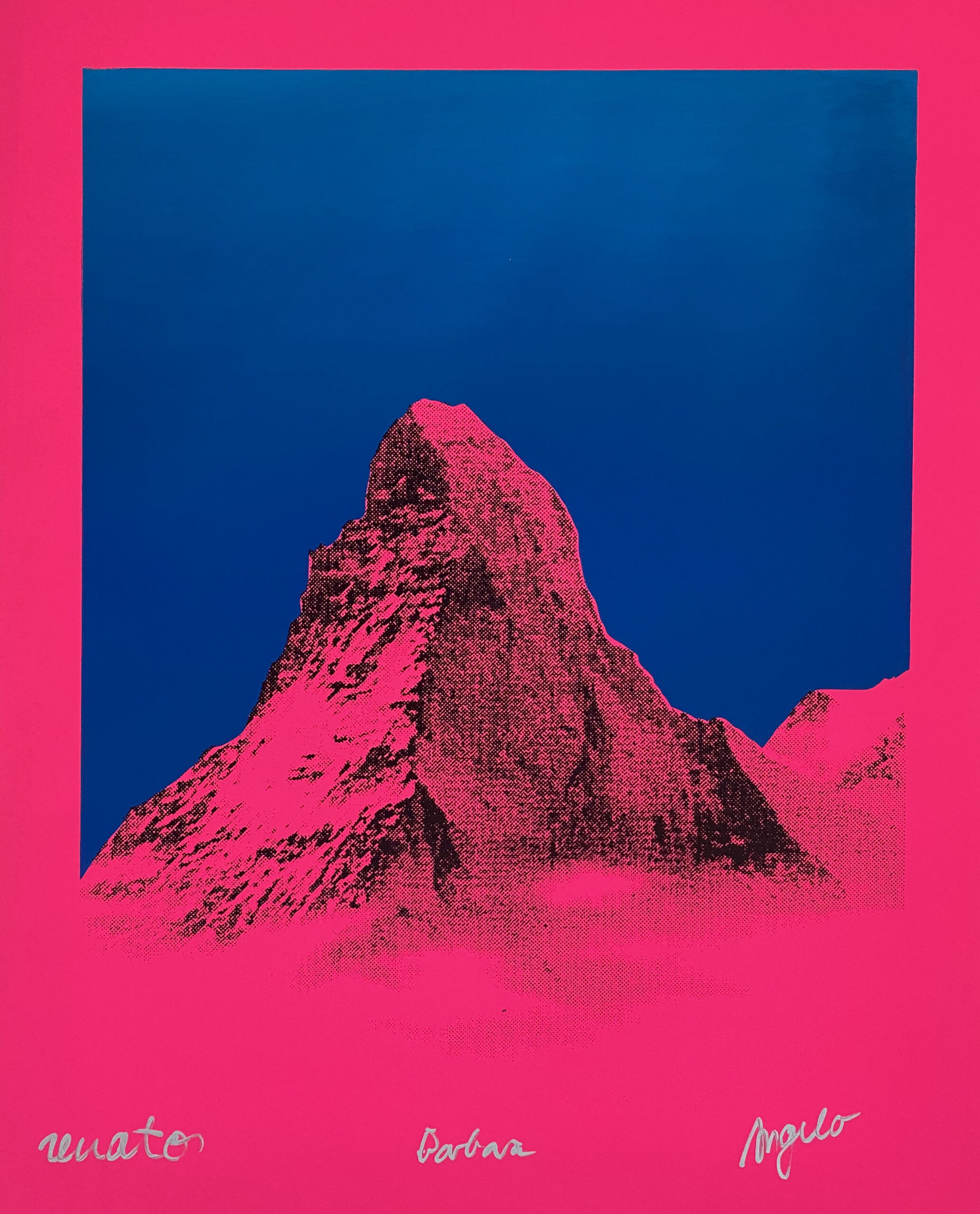 This is serigraphy is a collaboration of the former artist trio Atelier 91 based in Zurich, 1990