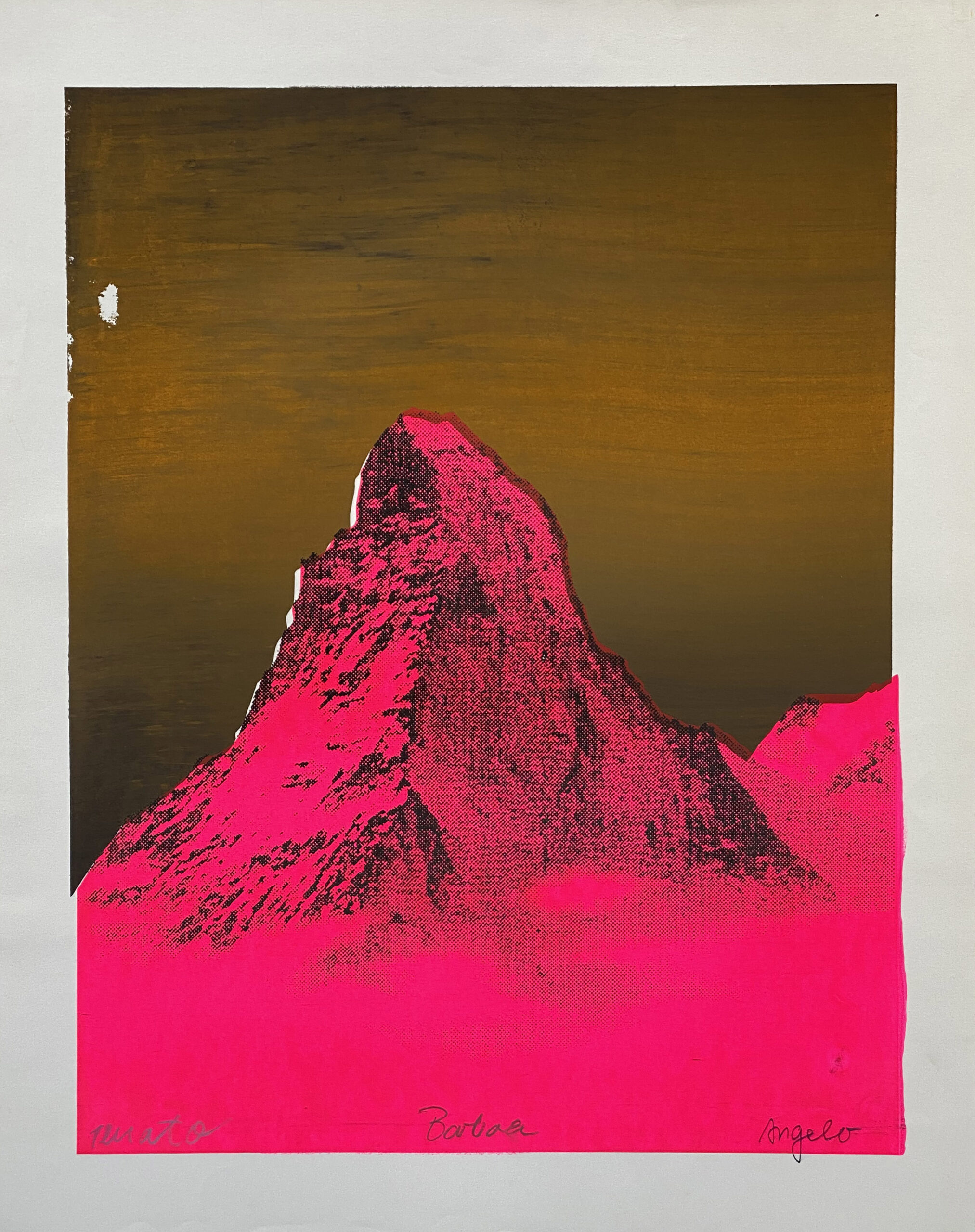 This is serigraphy is a collaboration of the former artist trio Atelier 91 based in Zurich, 1990