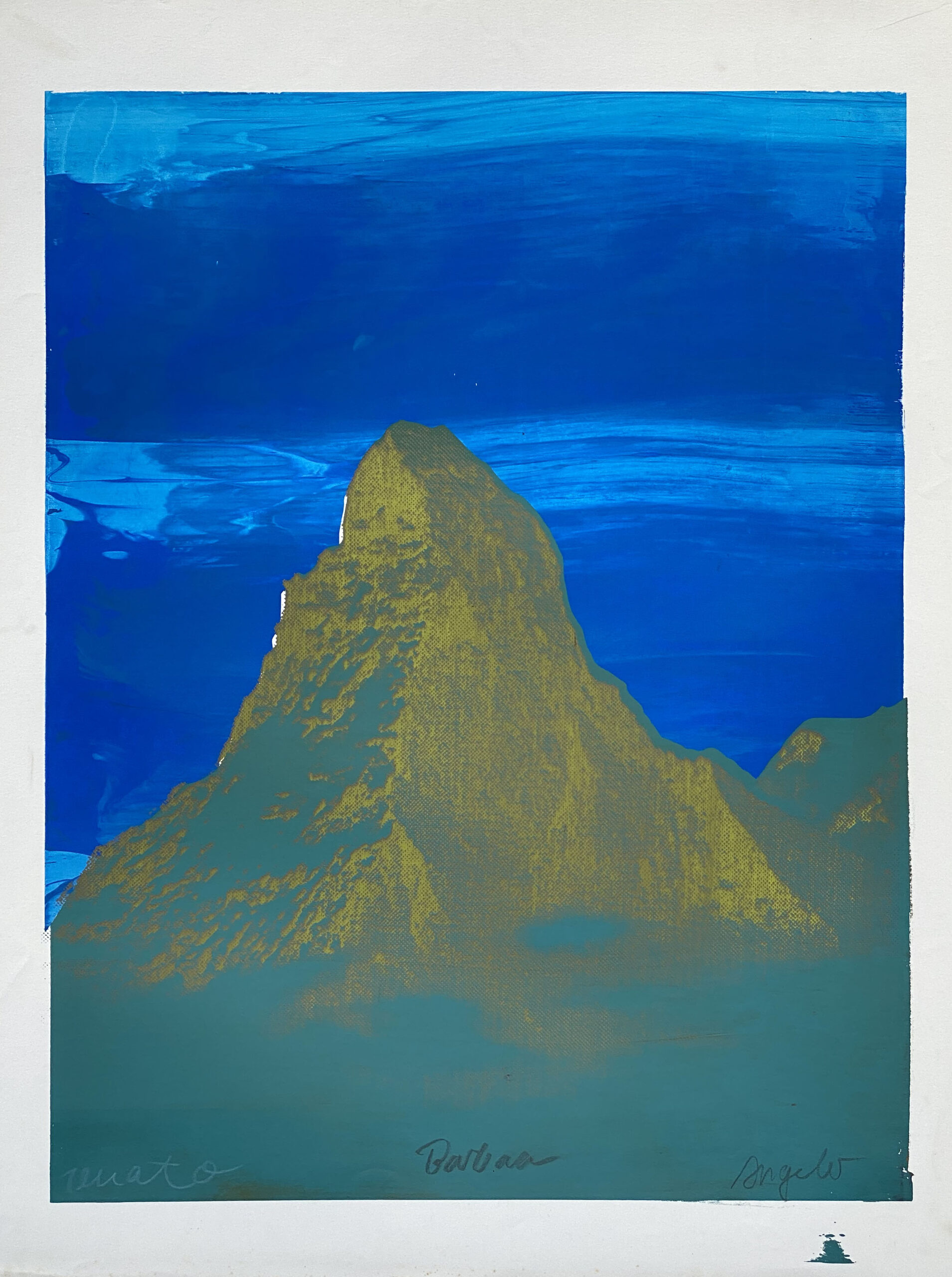 This is serigraphy is a collaboration of the former artist trio Atelier 91 based in Zurich, 1990