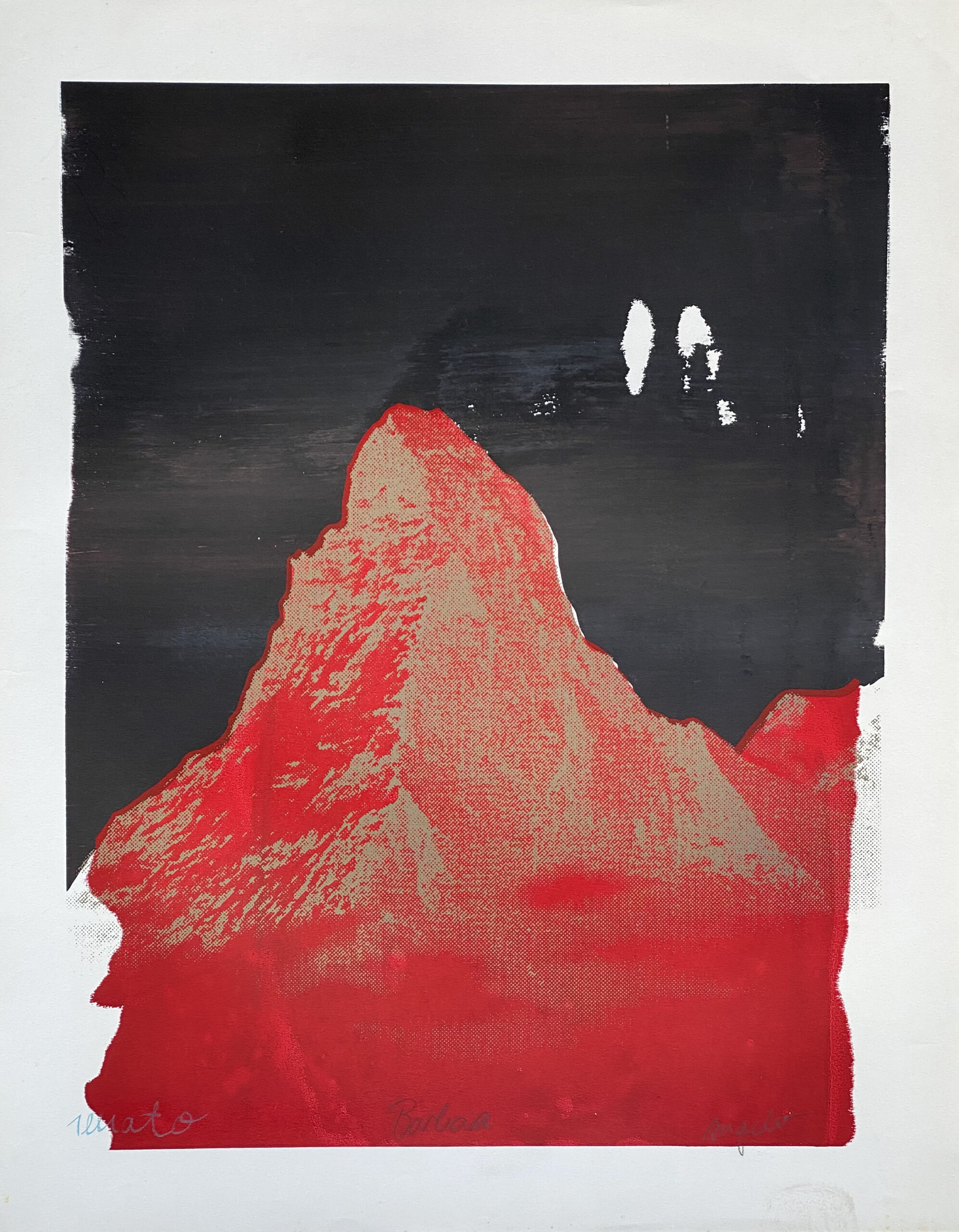 This is serigraphy is a collaboration of the former artist trio Atelier 91 based in Zurich, 1990