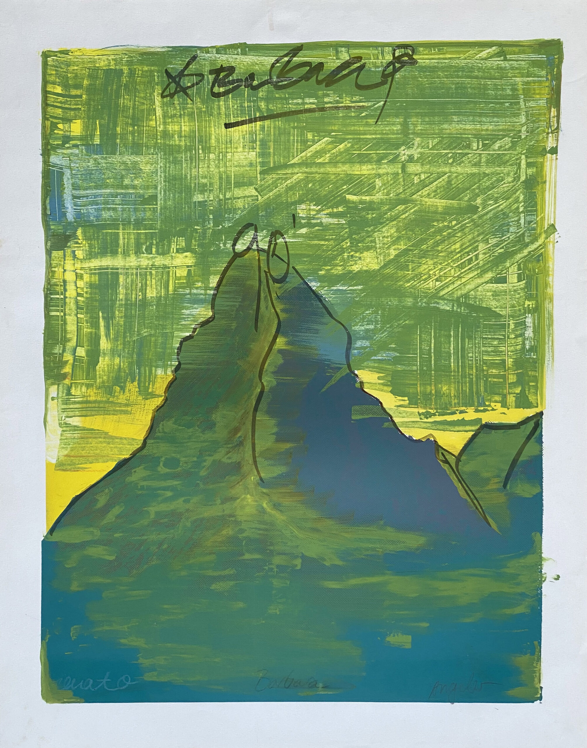 This is serigraphy is a collaboration of the former artist trio Atelier 91 based in Zurich, 1990