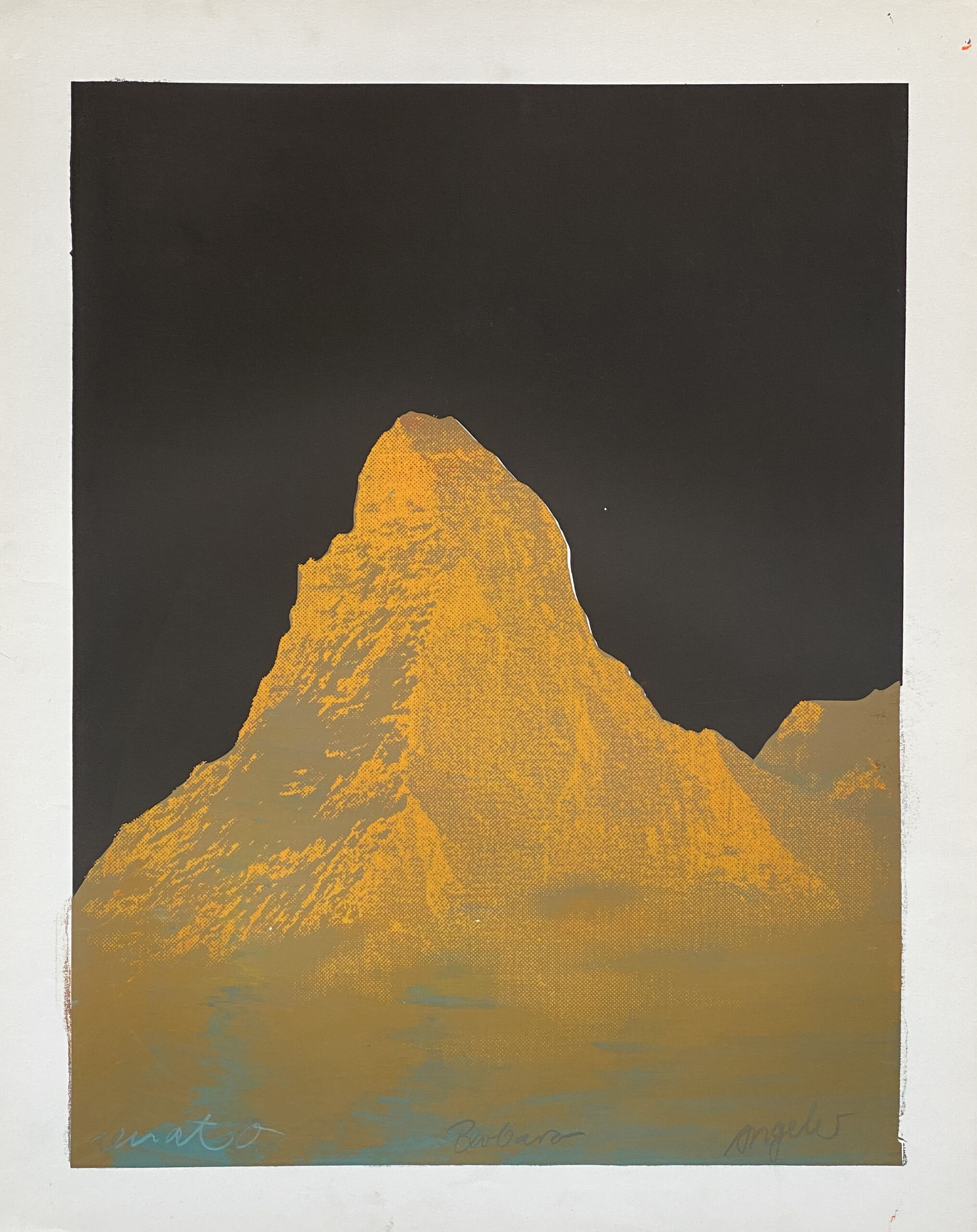 This is serigraphy is a collaboration of the former artist trio Atelier 91 based in Zurich, 1990