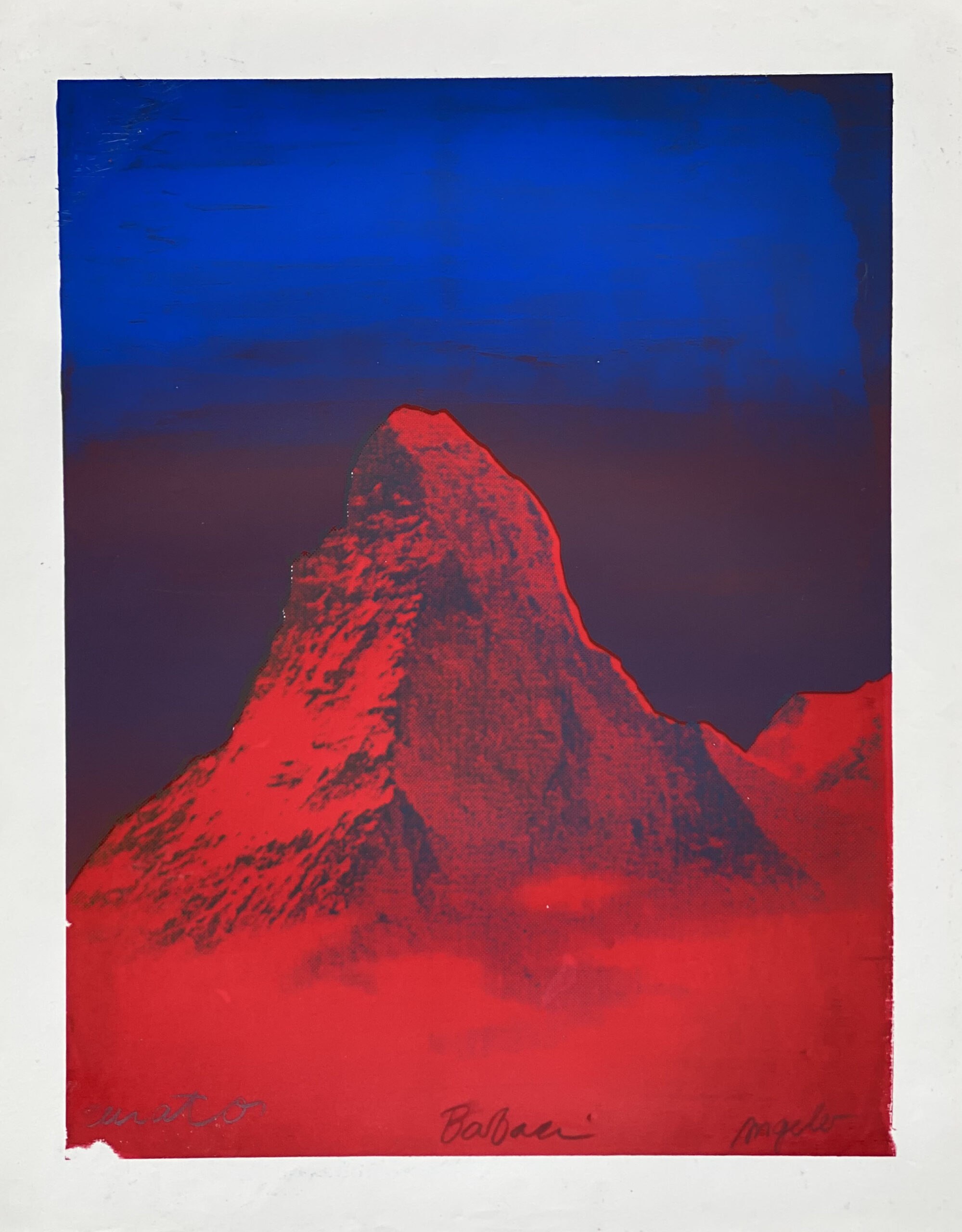 This is serigraphy is a collaboration of the former artist trio Atelier 91 based in Zurich, 1990